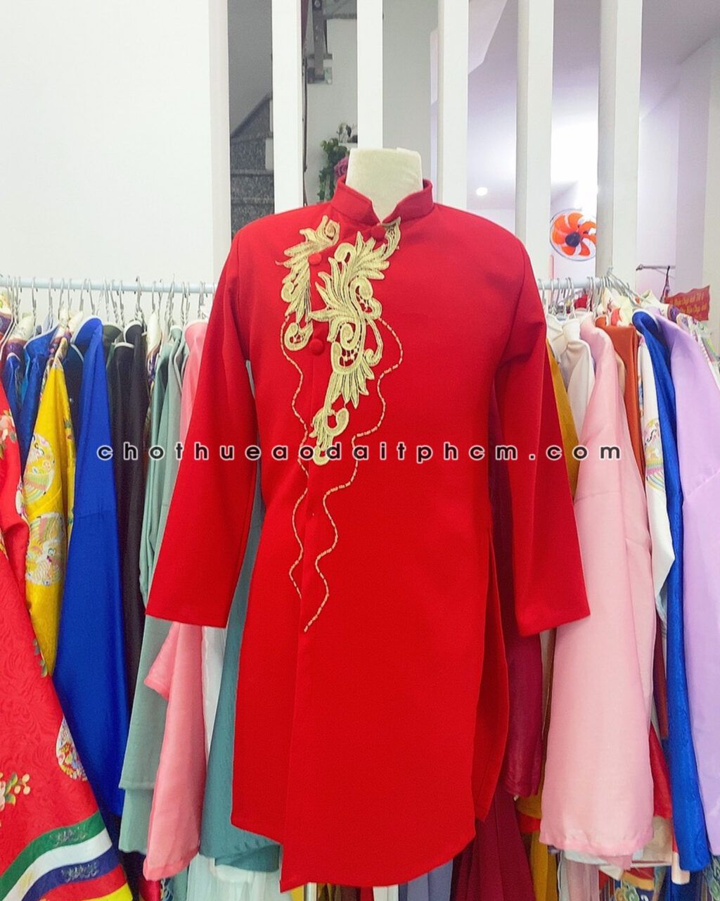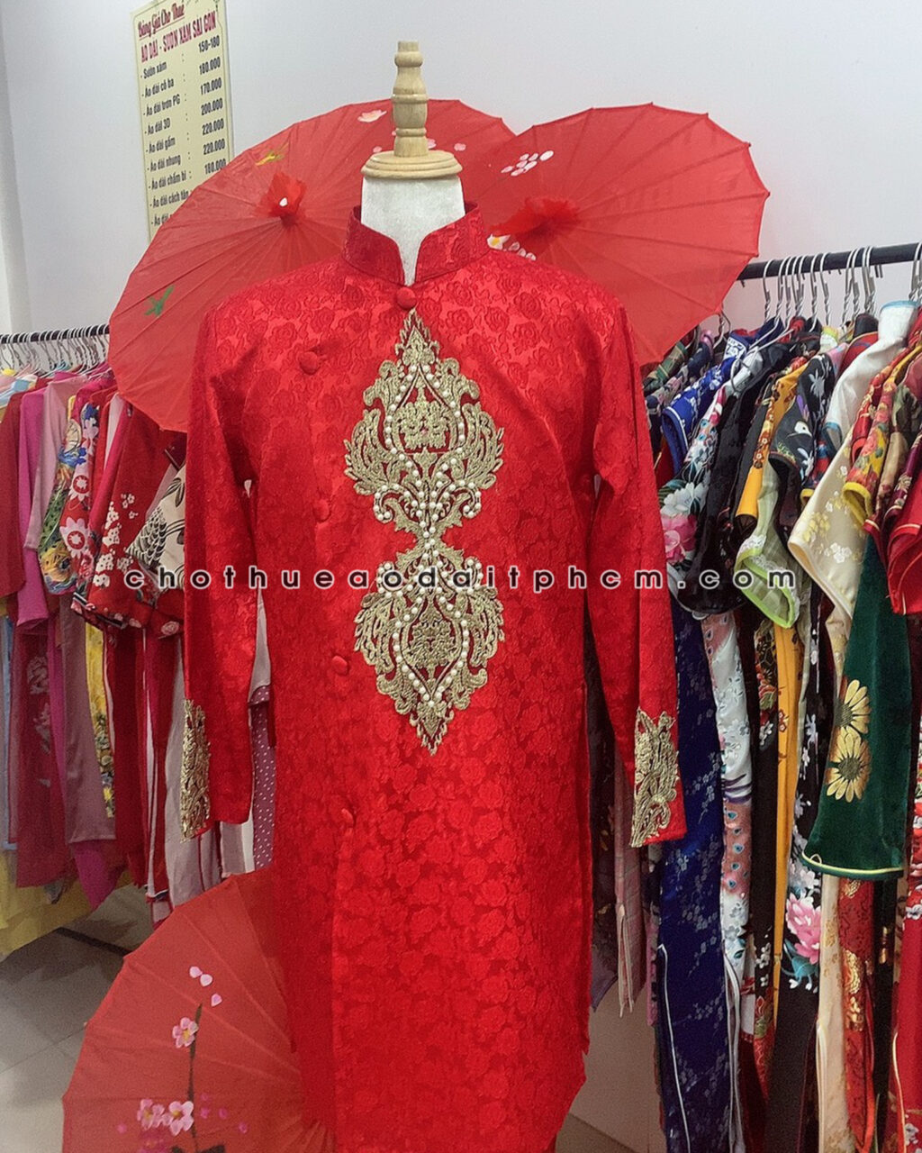 Áo dài nam ADN20 gấm xốp đỏ thêu công