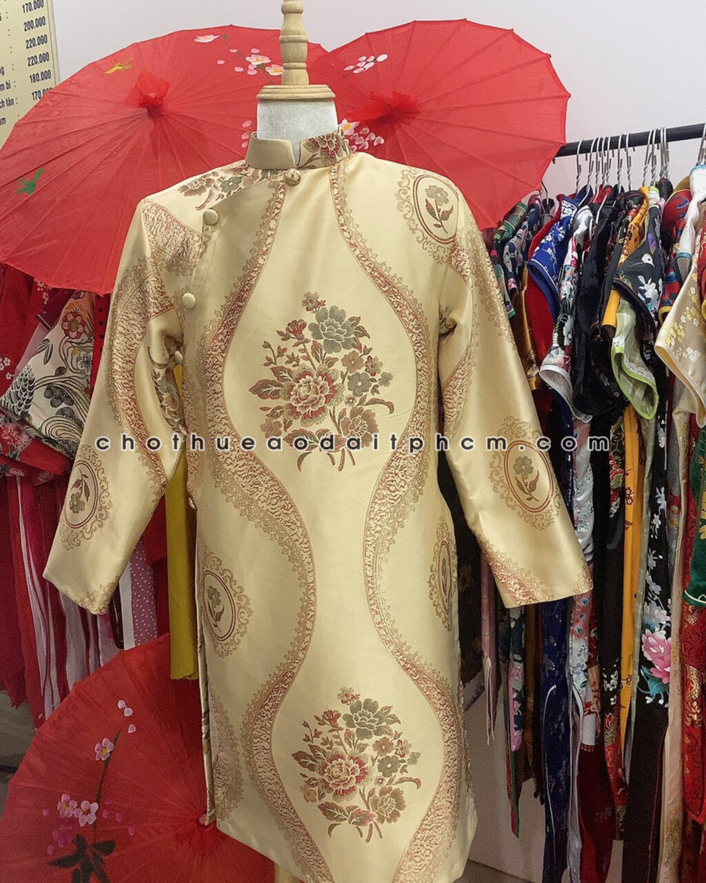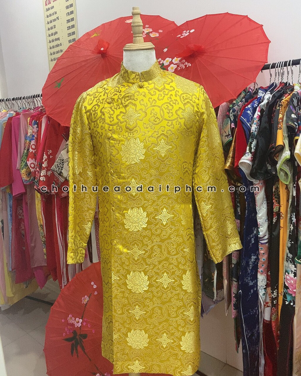 Áo dài nam ADN27 vàng in hoa văn 3d