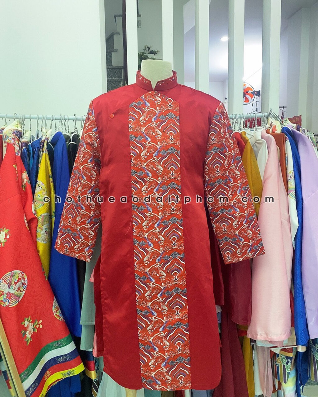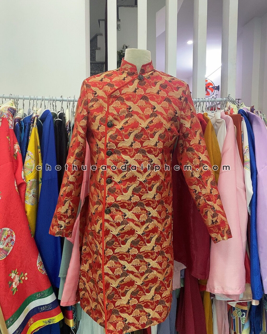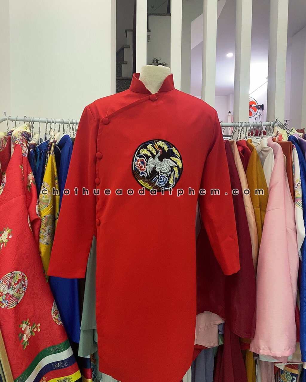 Áo dài nam ADN13 đỏ hoa văn hạc