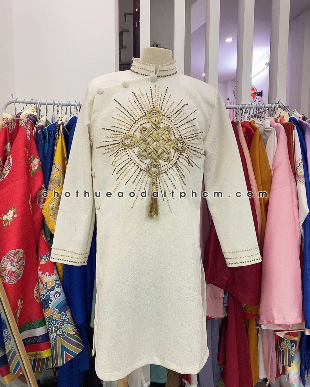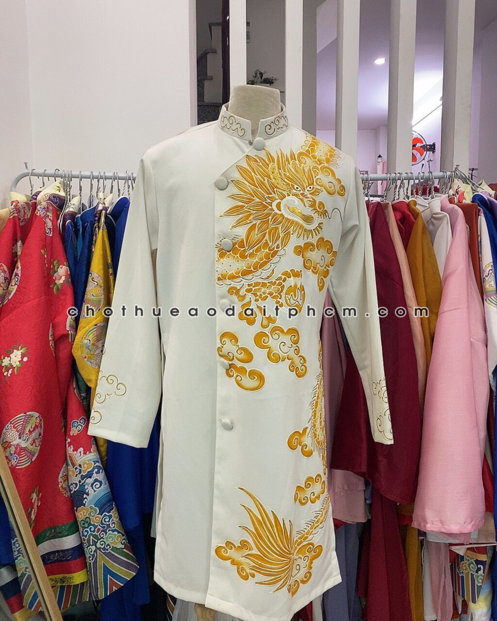 Áo dài nam ADN12 gấm trắng thêu phượng