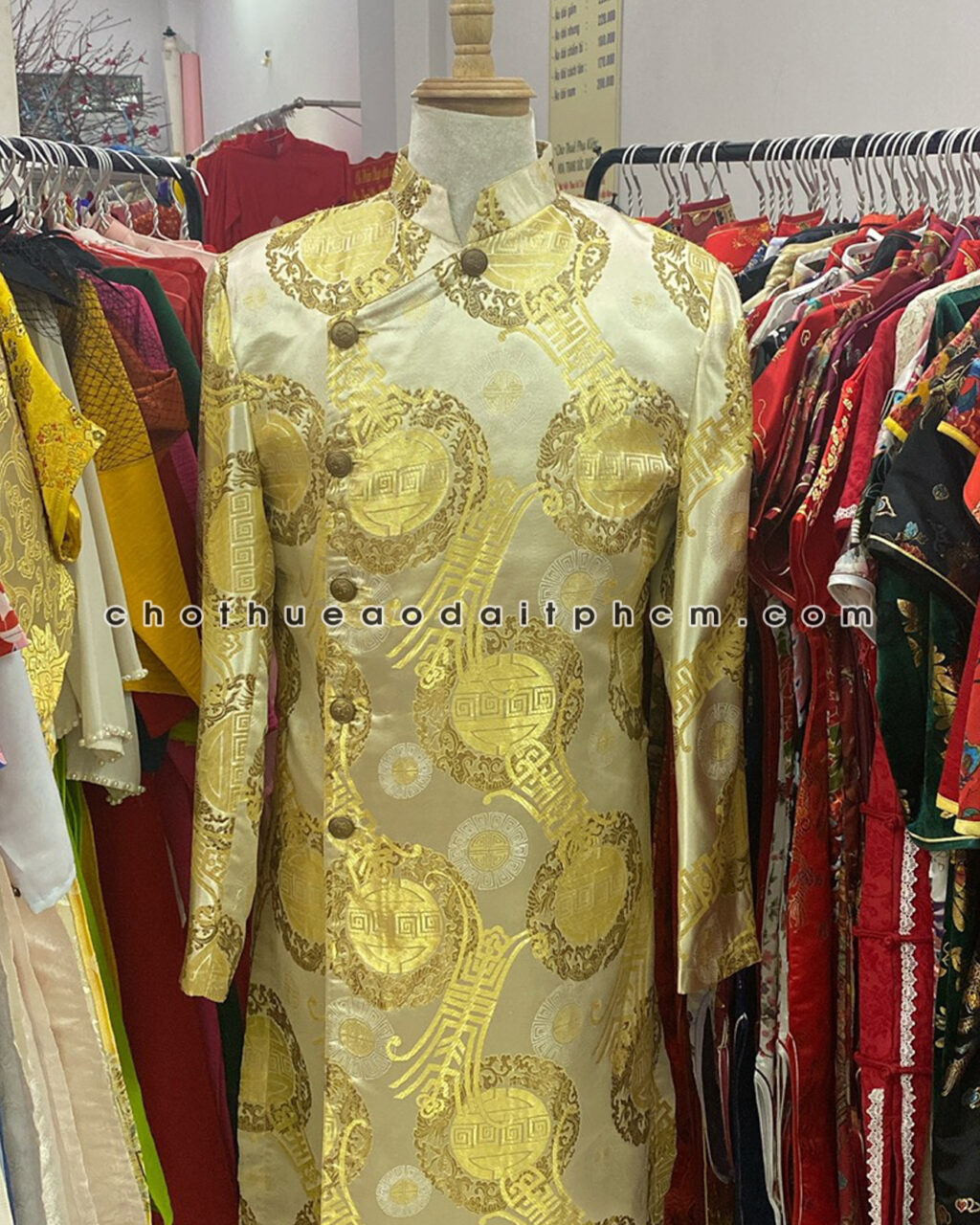 Áo dài nam ADN42 gấm vàng hoa văn