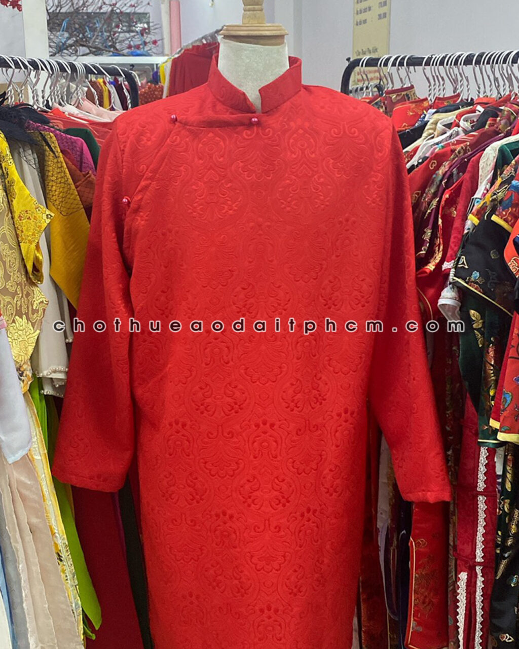 Áo dài nam ADN50 gấm đỏ hoa văn