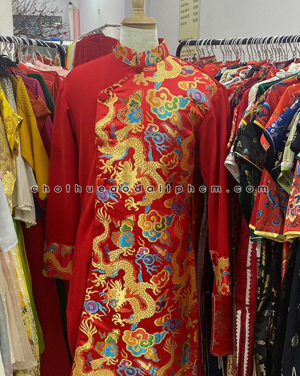 Áo dài nam ADN51 gấm đỏ rồng