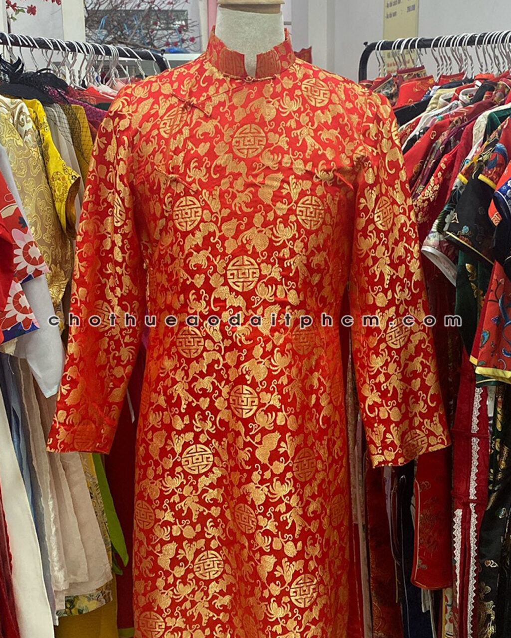 Áo dài nam ADN40 đỏ gấm hoa văn