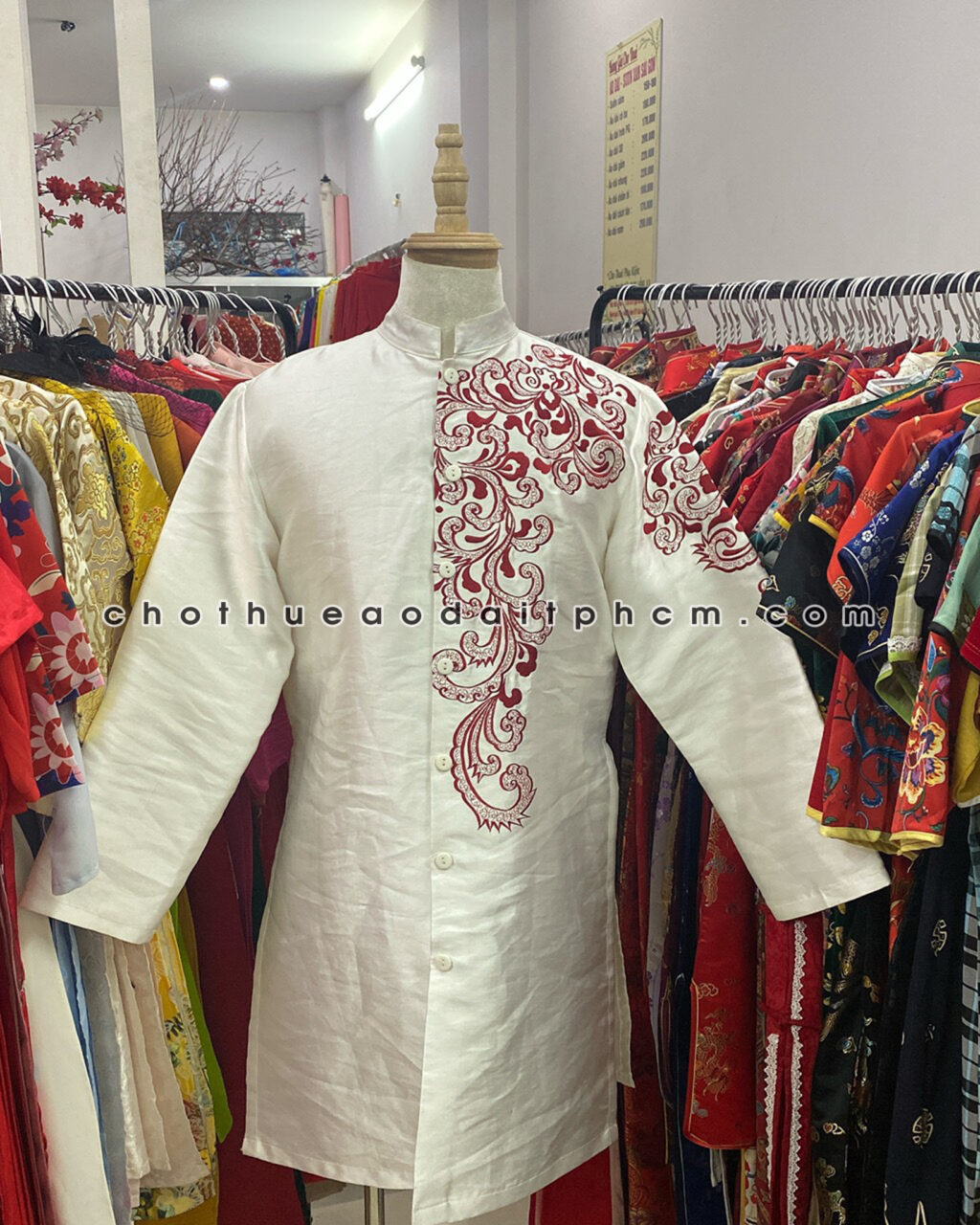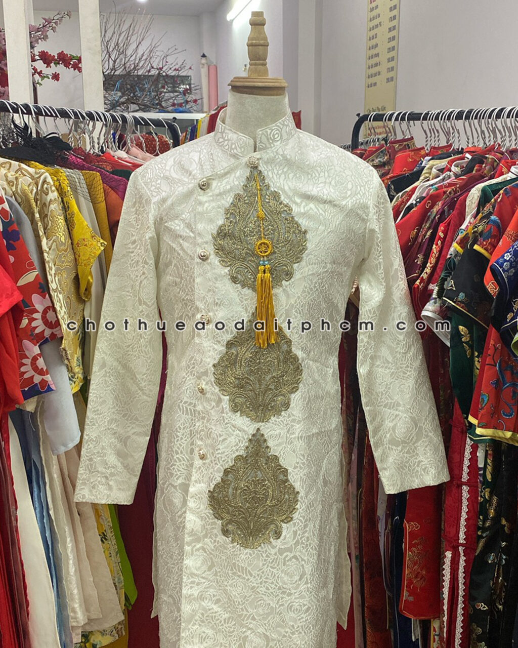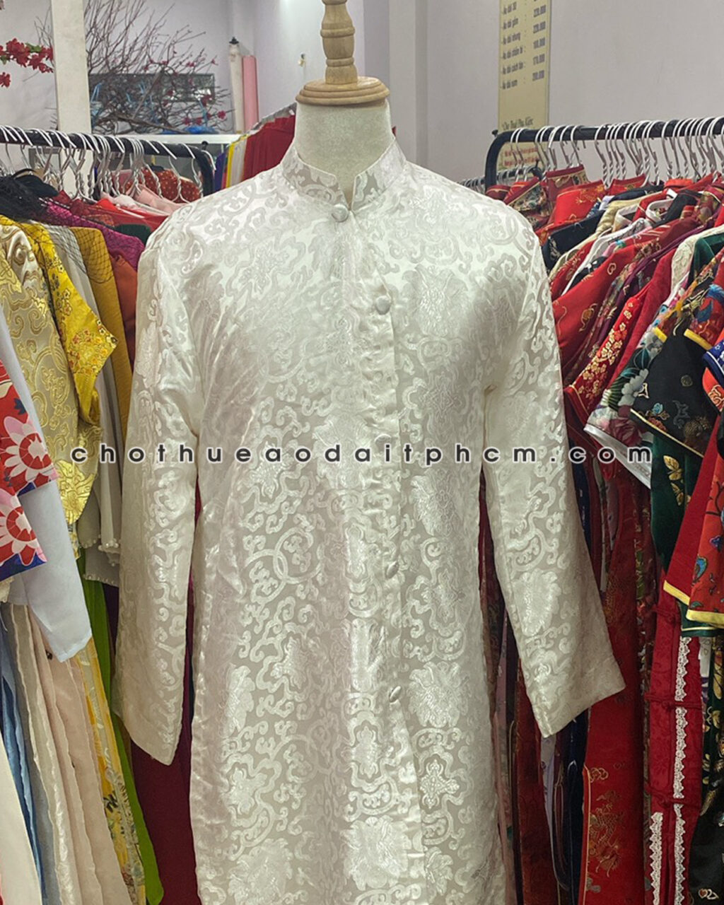 Áo dài nam ADN48 trắng xốp thêu
