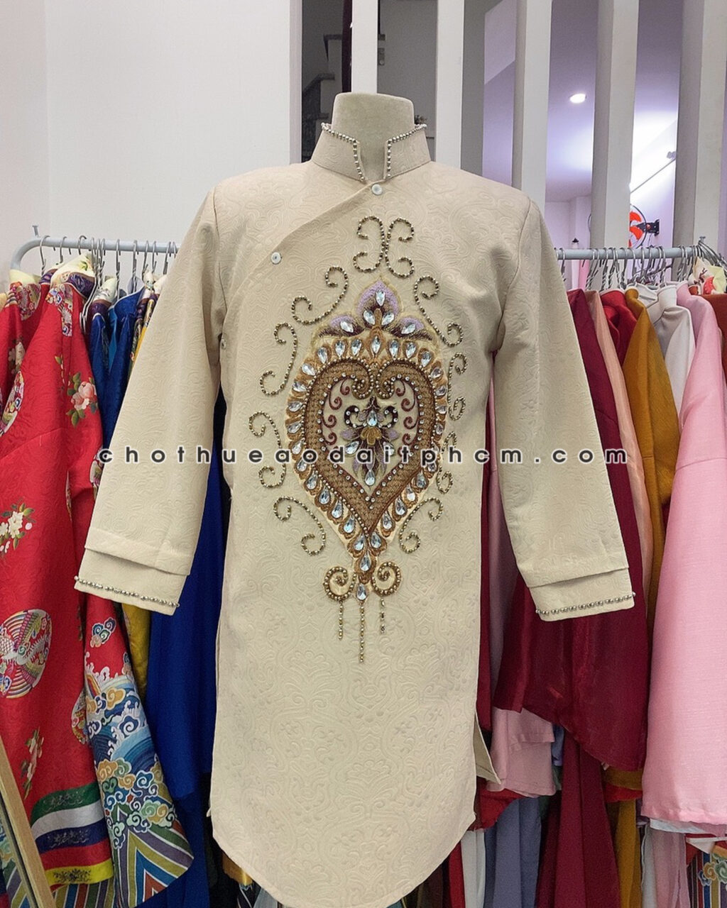 Áo dài nam ADN30 trắng kem đính đá