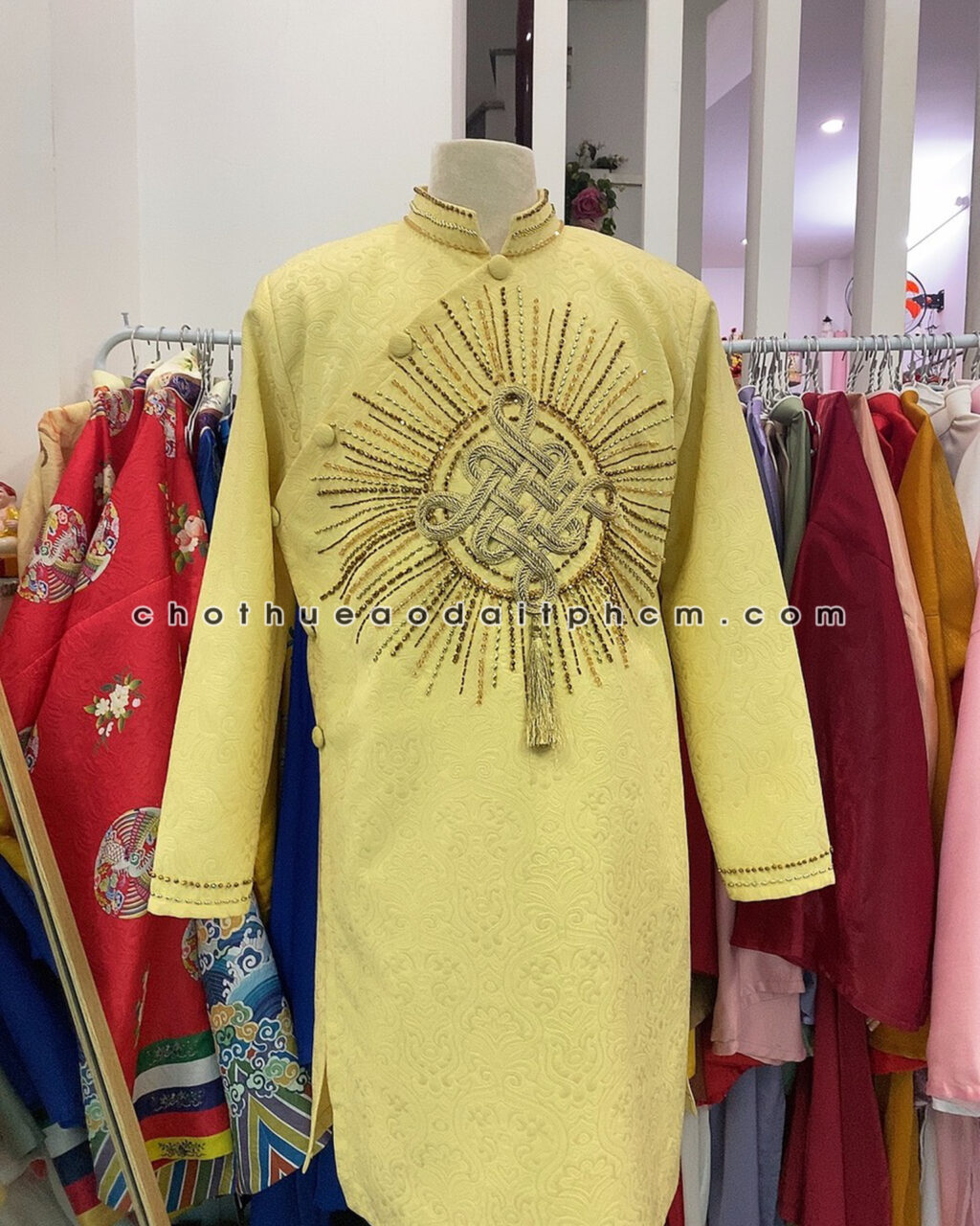 Áo dài nam ADN34 vàng đính hạt