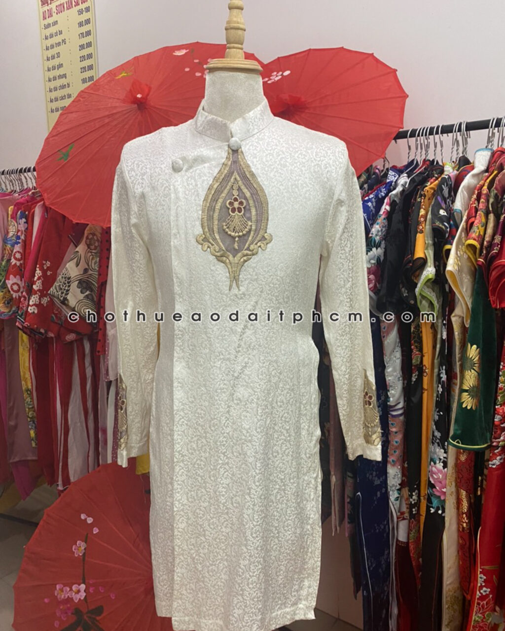 Áo dài nam ADN65 trắng gấm hỷ