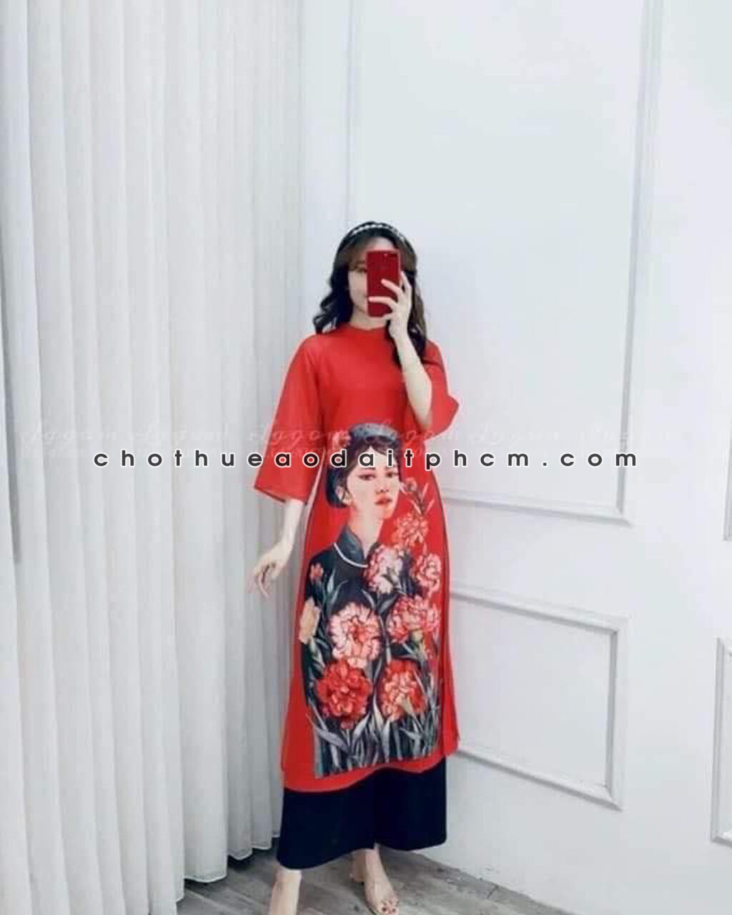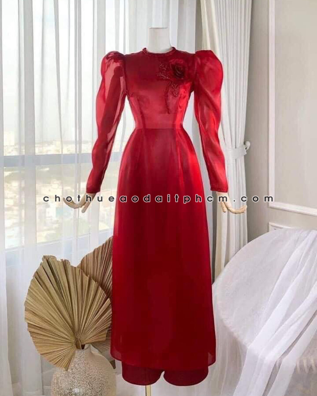 Áo dài cách tân ACT25 đỏ tơ voan cô gái