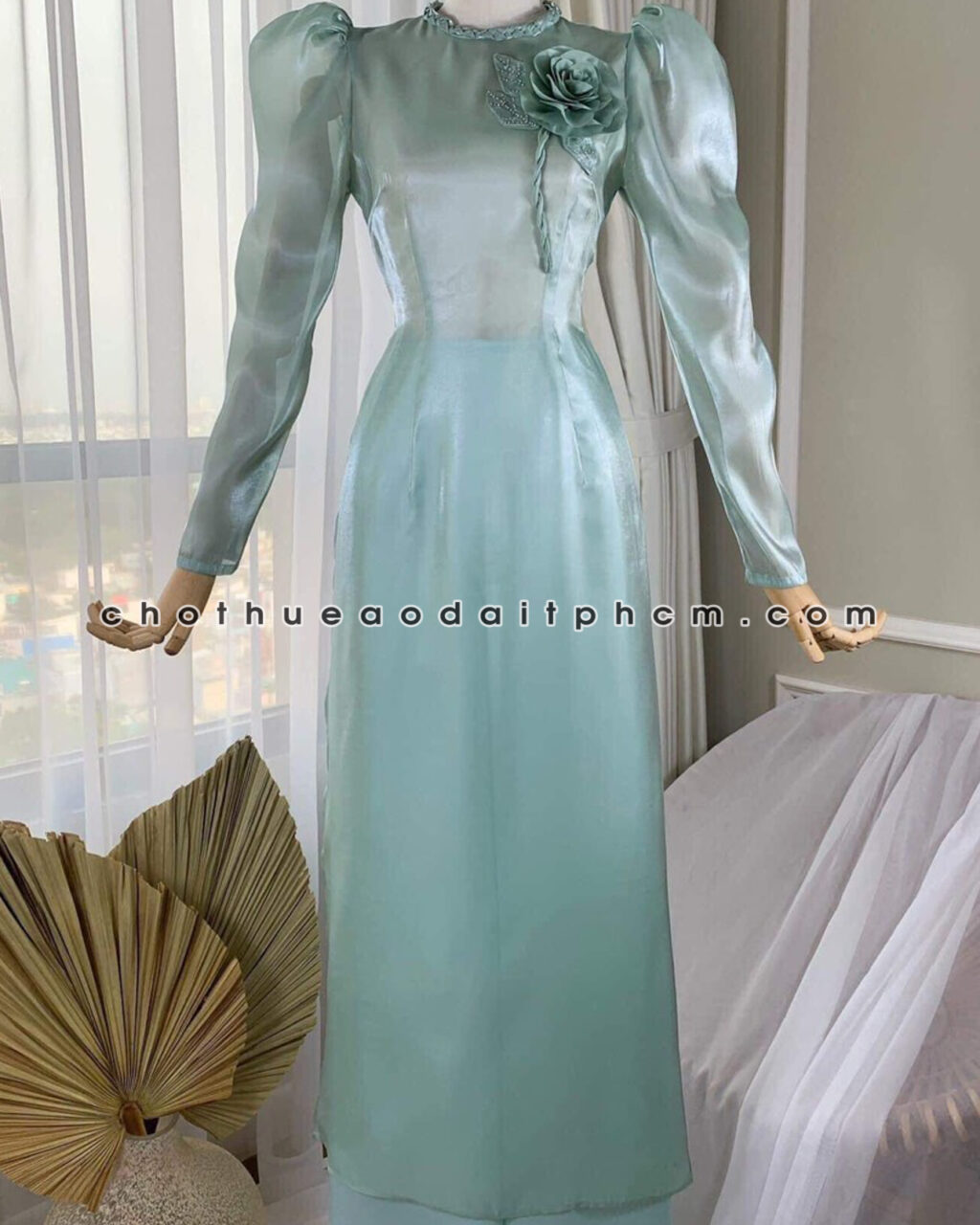 Áo dài cách tân ACT28 xinh mint tơ sống đính hoa