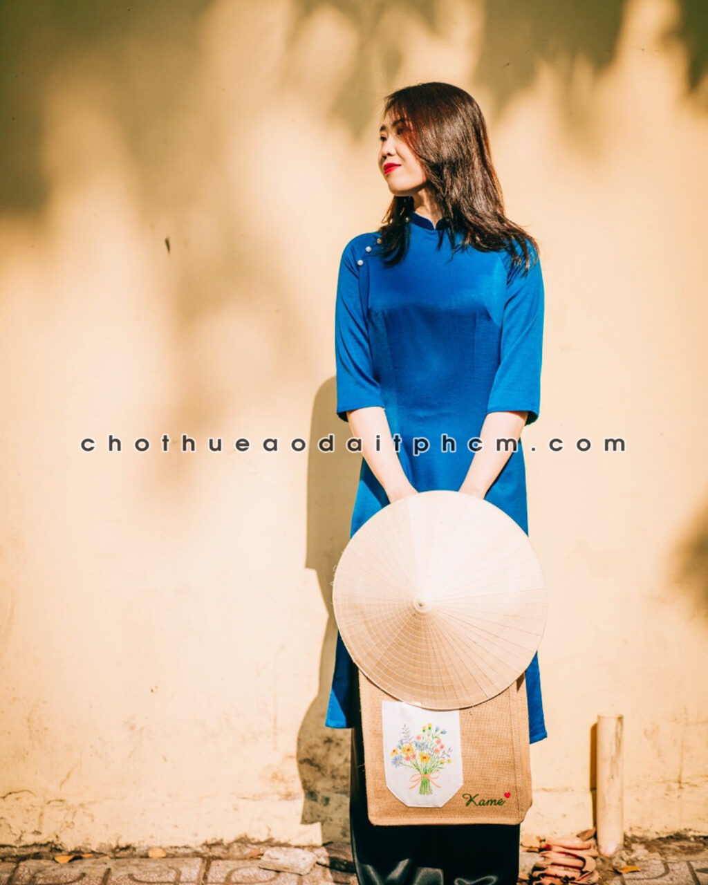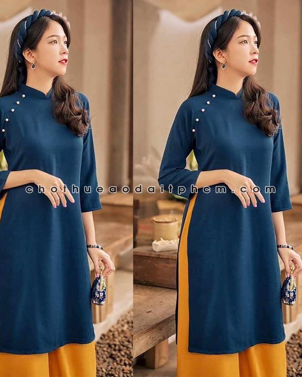 Áo dài cách tân ACT22 xanh cô ban không cổ