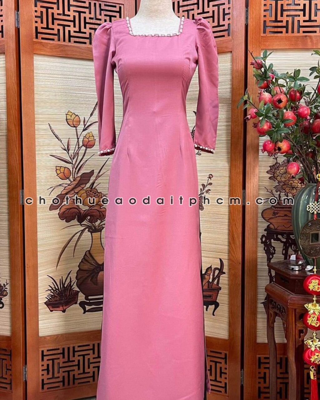 Áo dài cách tân ACT29 hồng tơ sống đính hoa