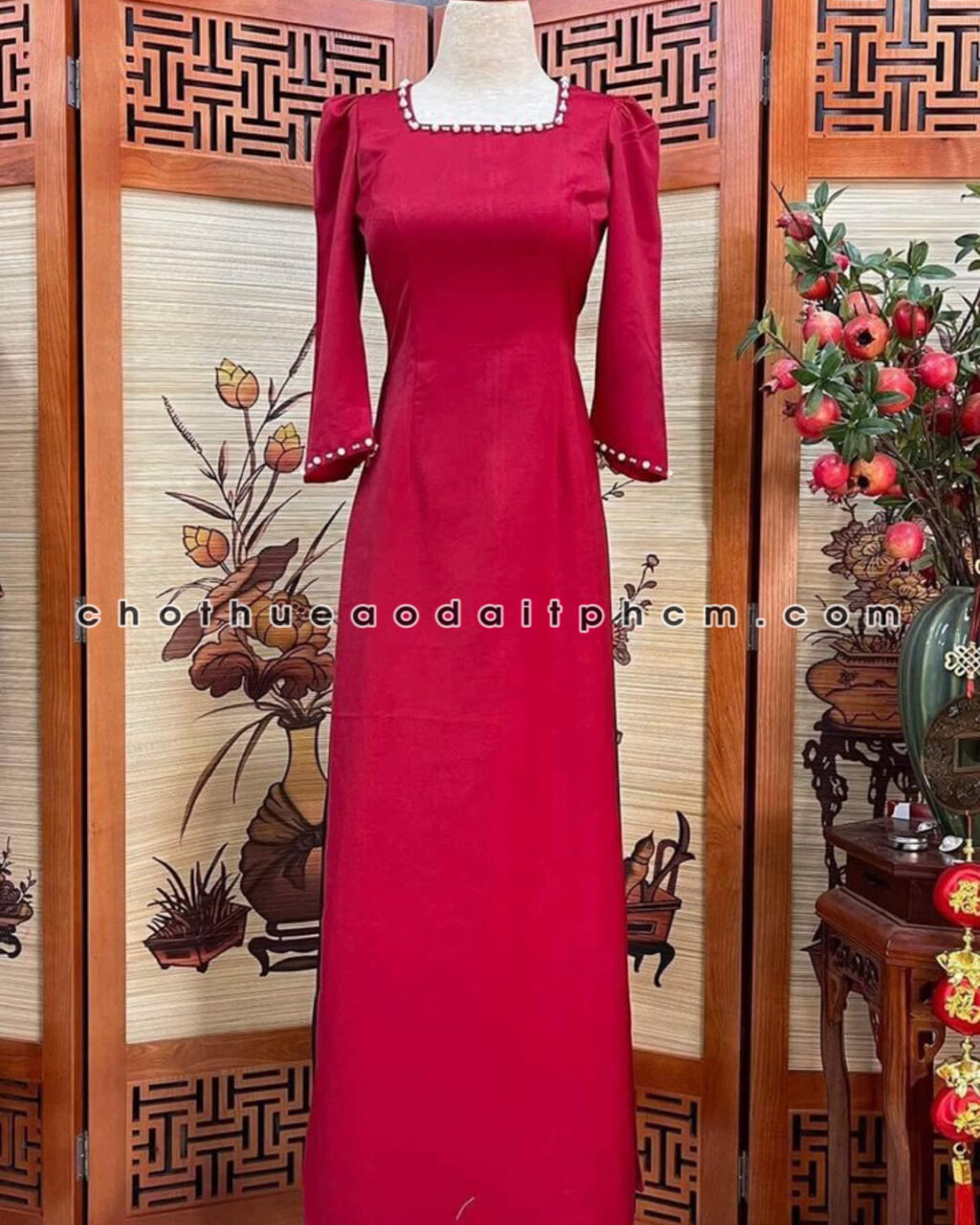 Áo dài cách tân ACT33 đỏ cổ vuông đính hạt