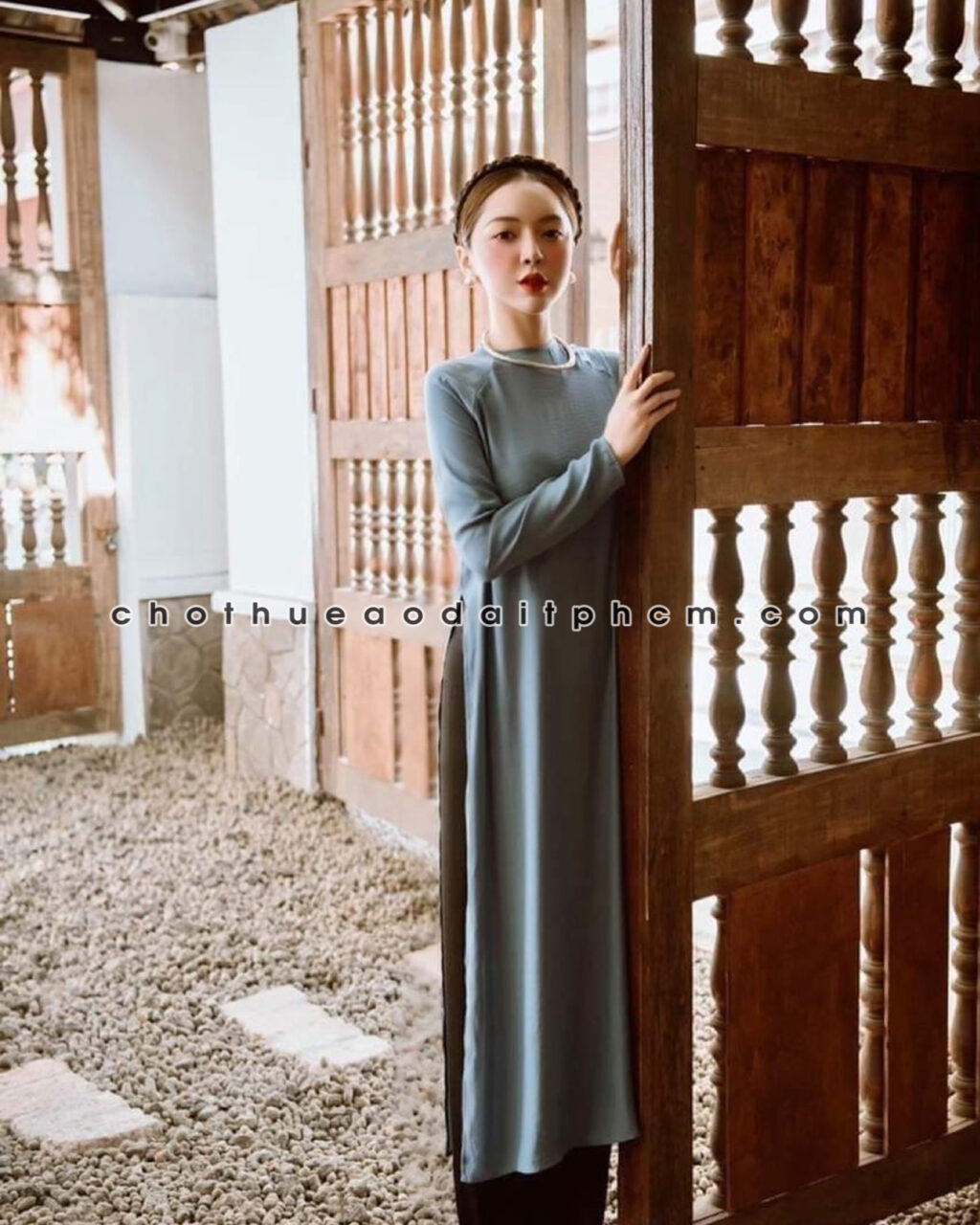 Áo dài cách tân ACT20 xanh dương mint không cổ