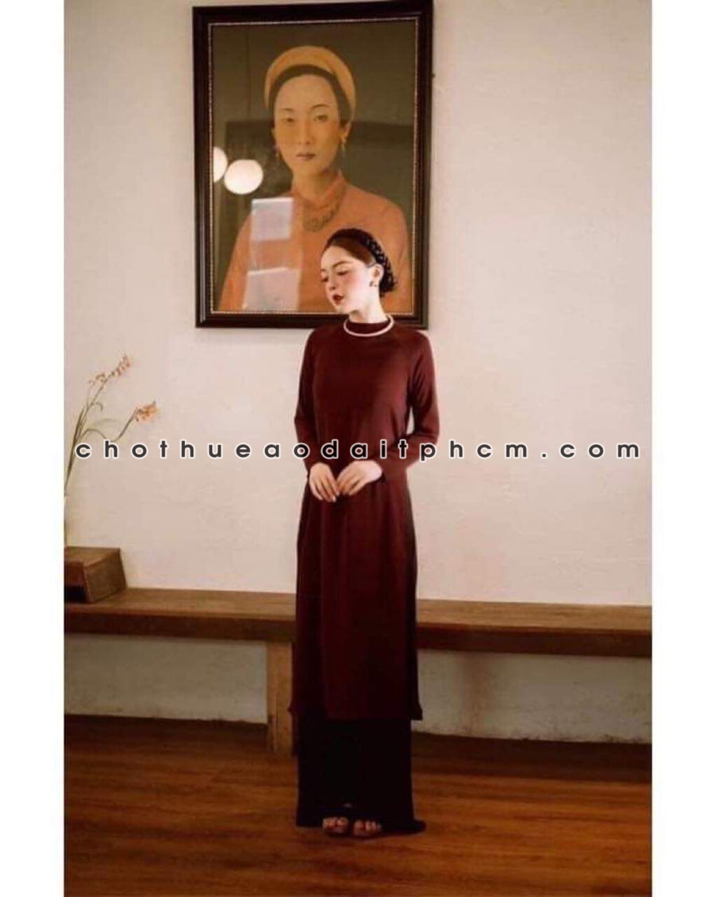 Áo dài cách tân ACT21 đỏ đô không cổ