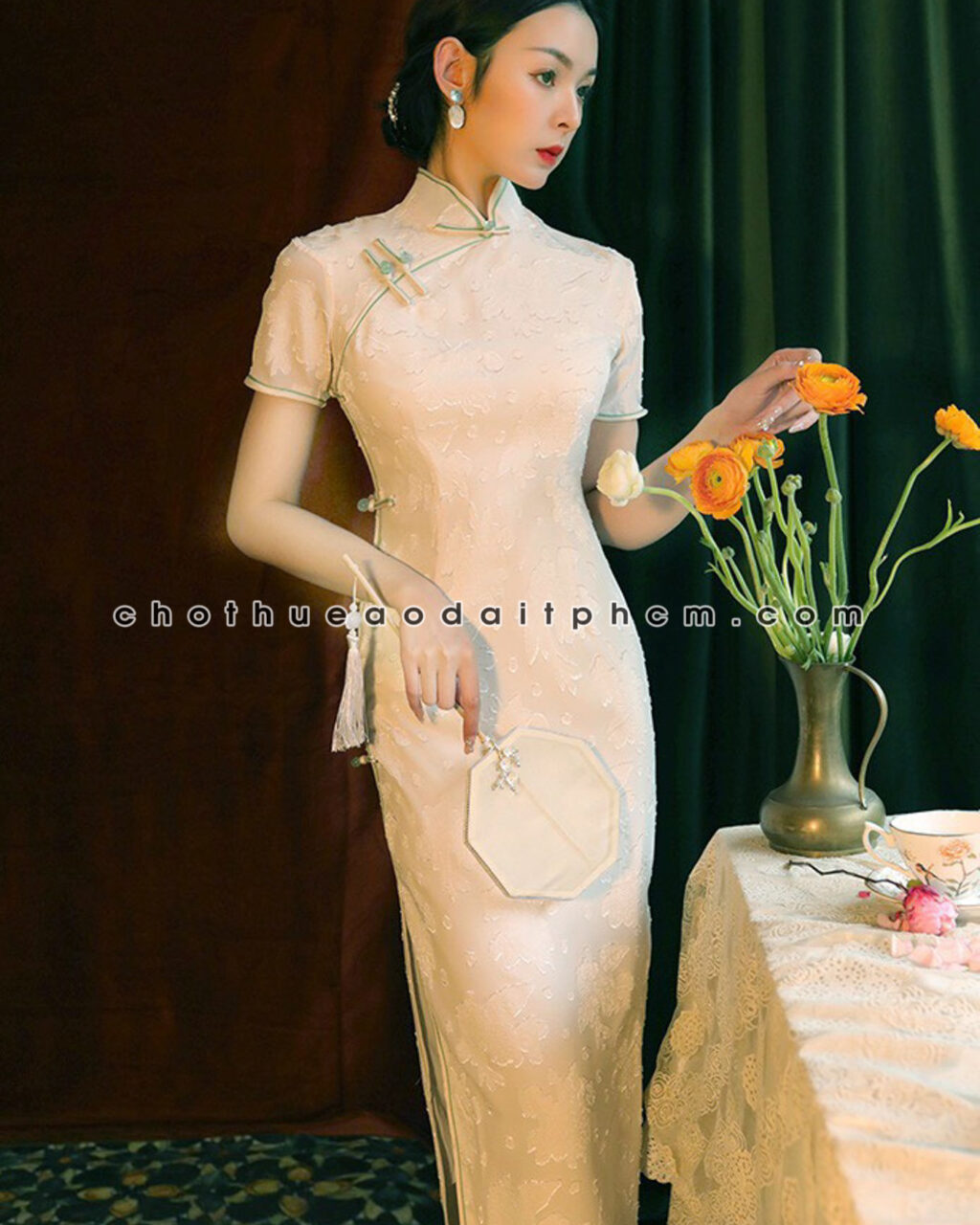 Sườn xám SXD39 trắng kem