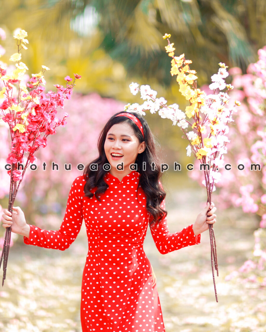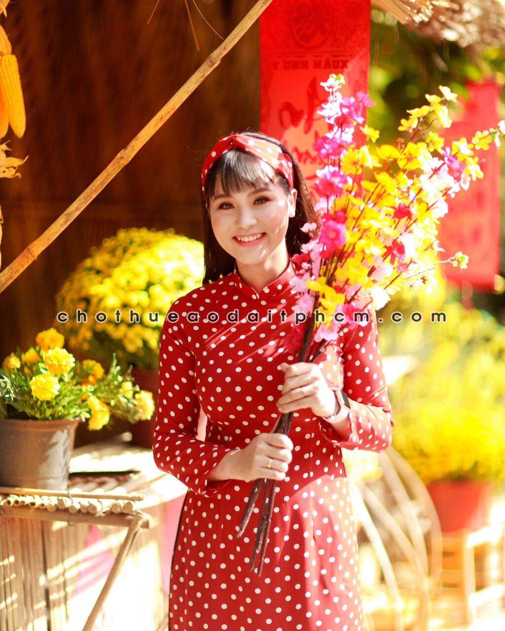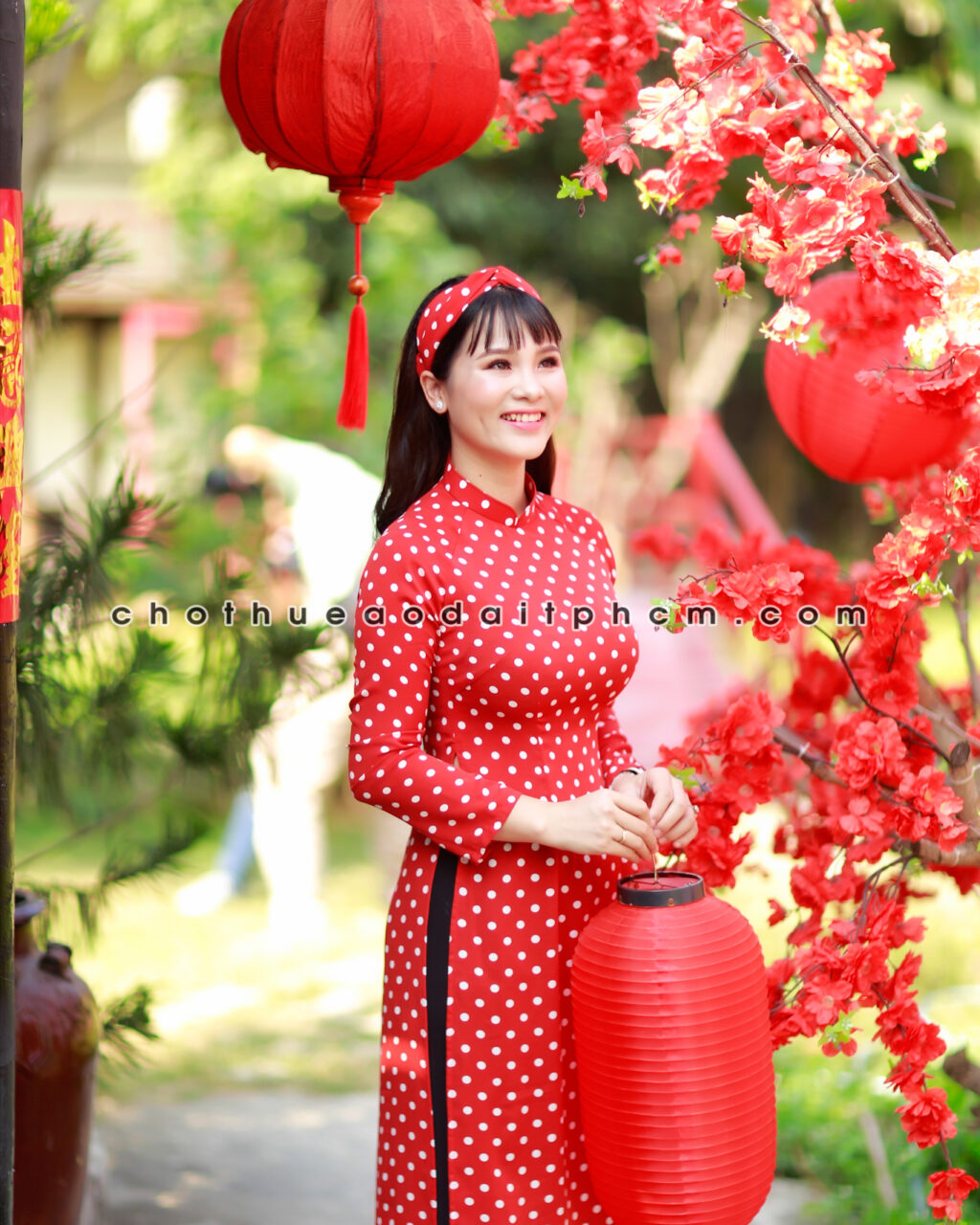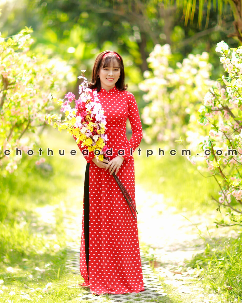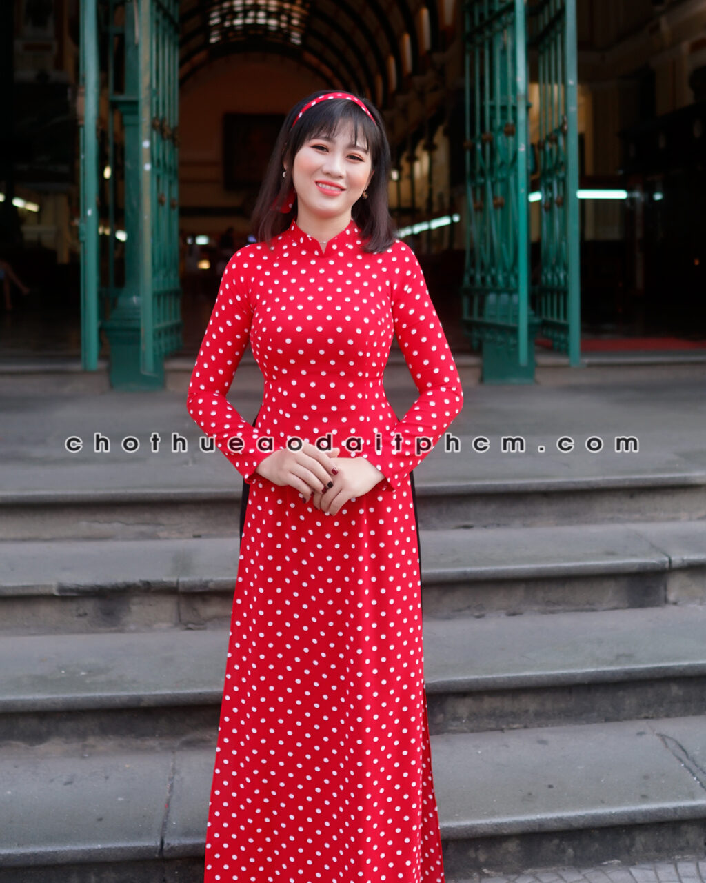 Cho thuê áo dài chấm bi cô ba – Áo dài cô ba chấm bi – Áo dài Sài Gòn