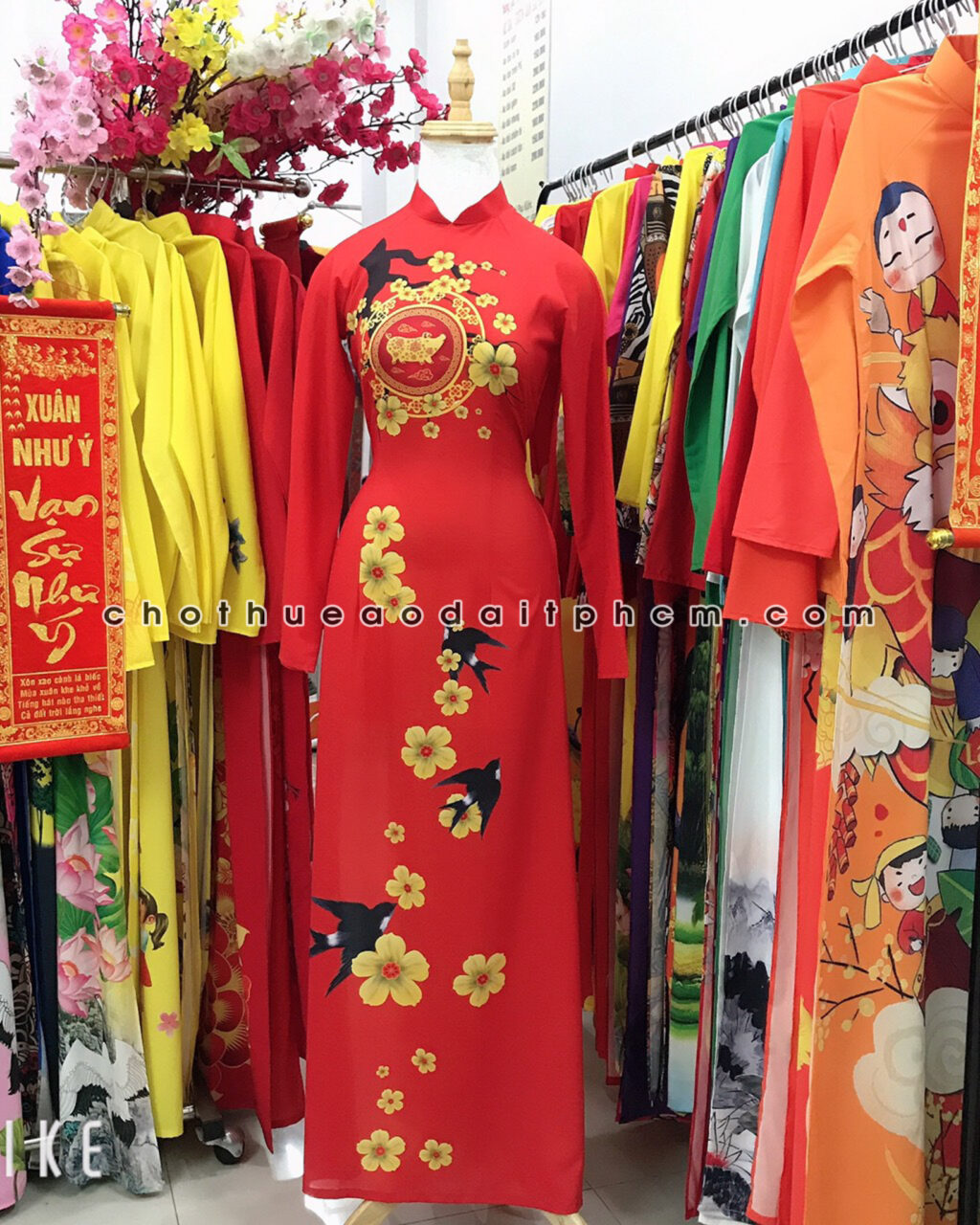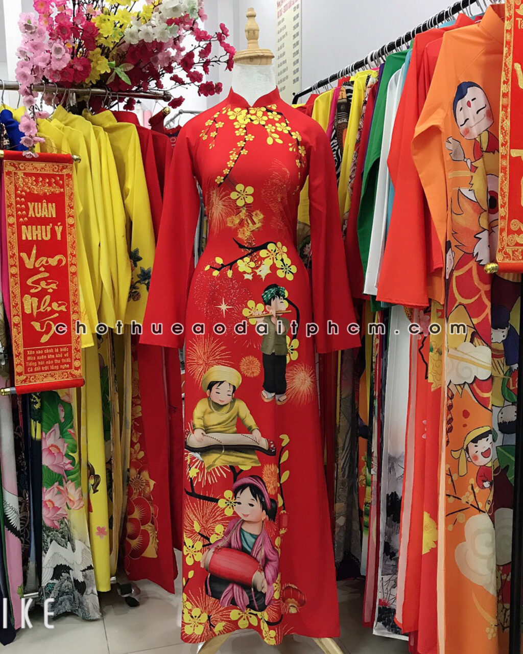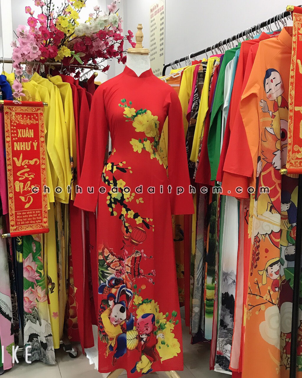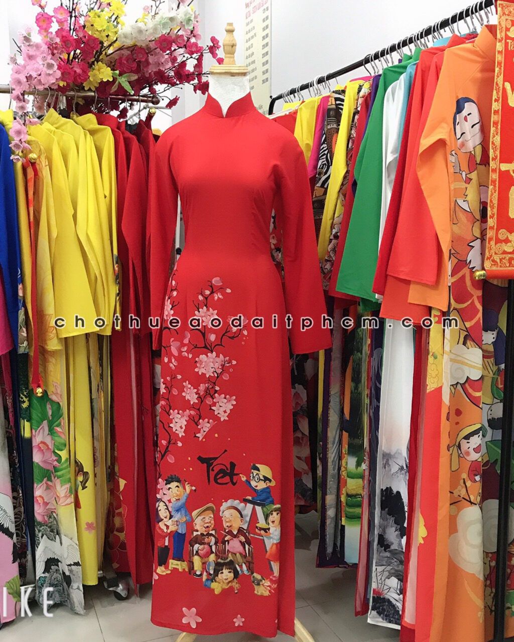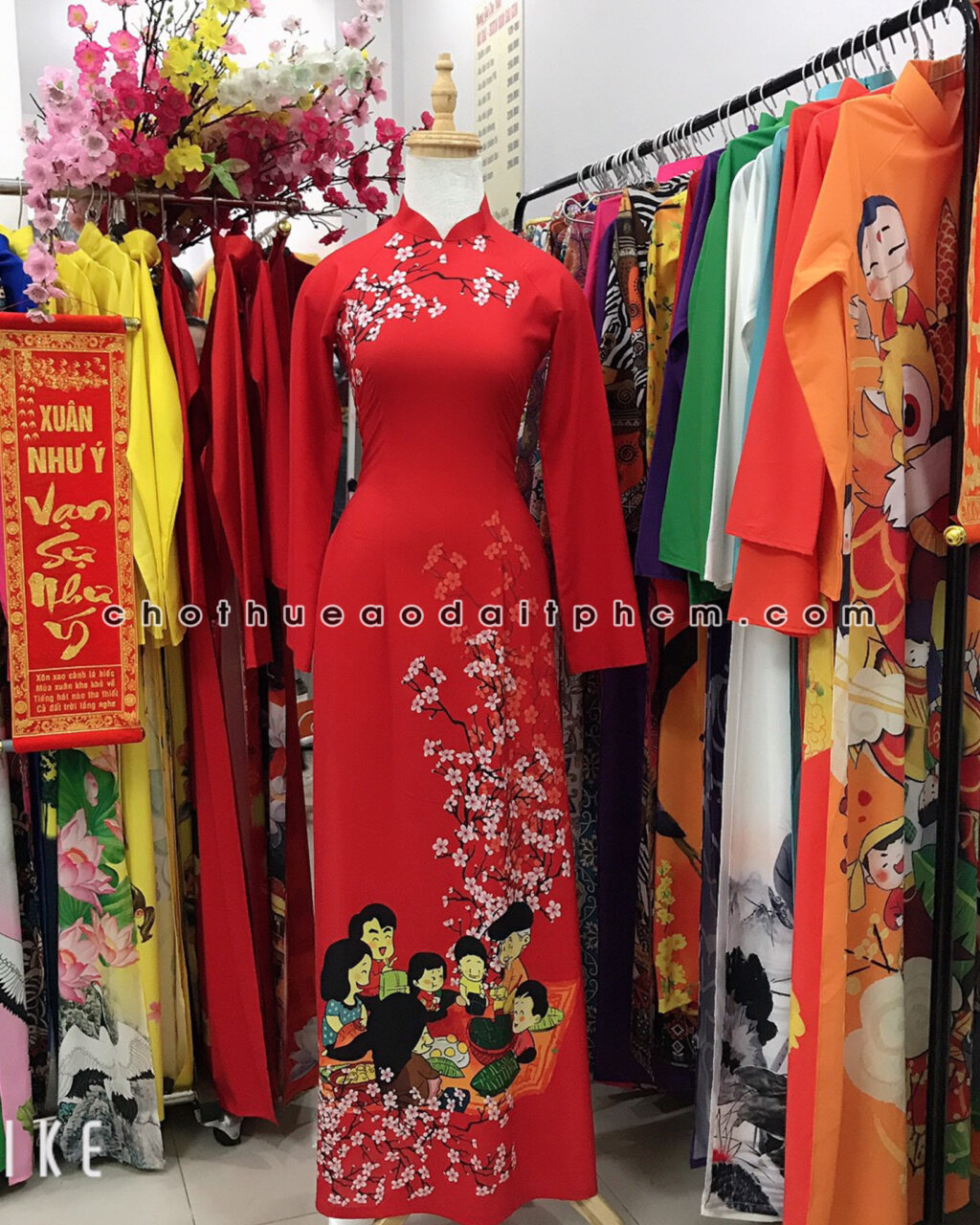 Áo dài truyền thống ADT60 đỏ hoa Tết