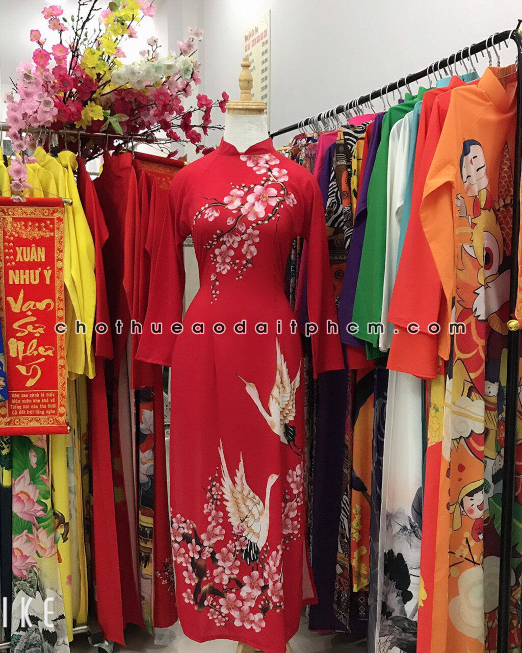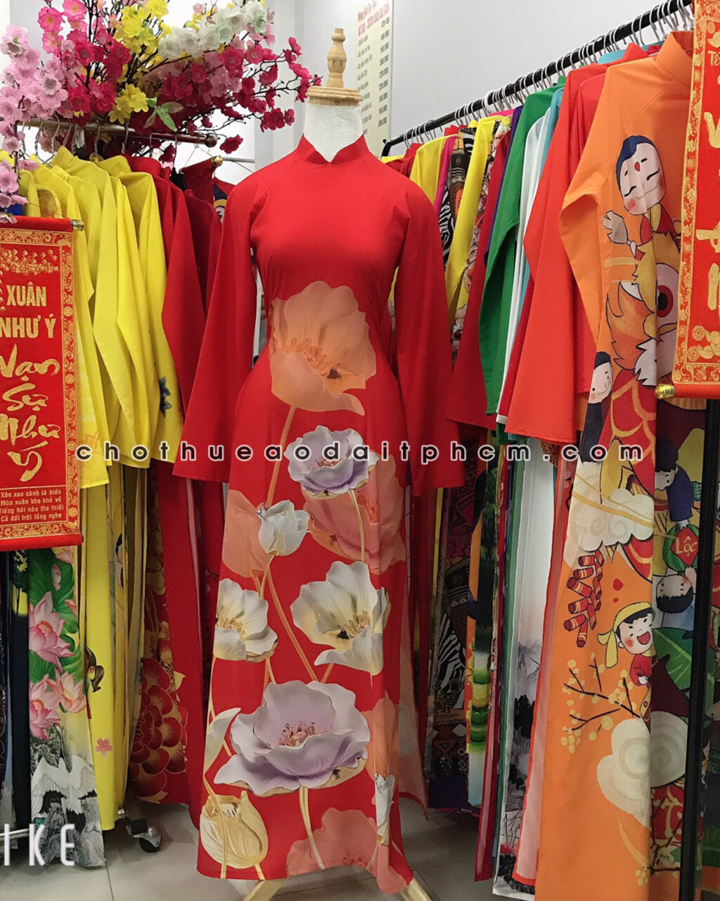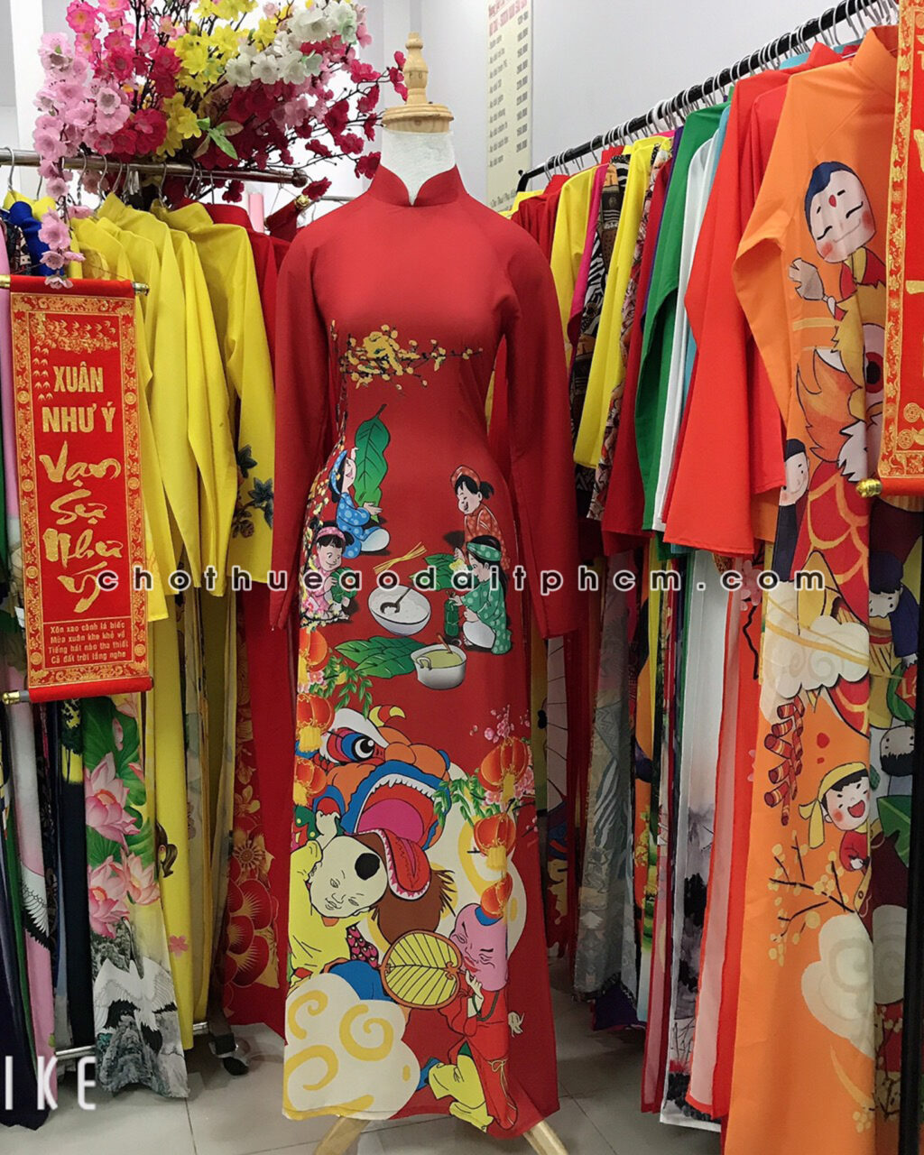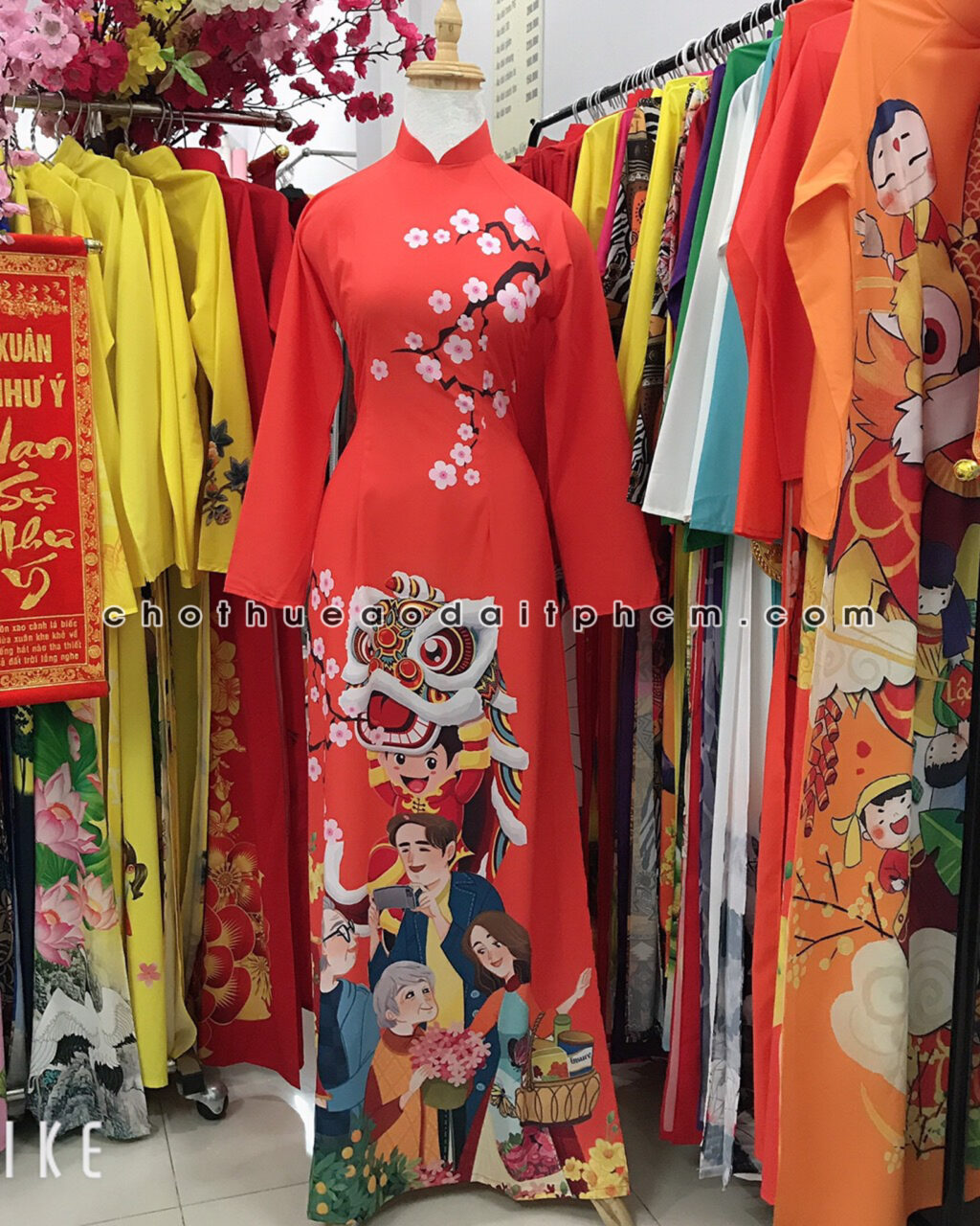 Áo dài truyền thống ADT60 đỏ hoa Tết
