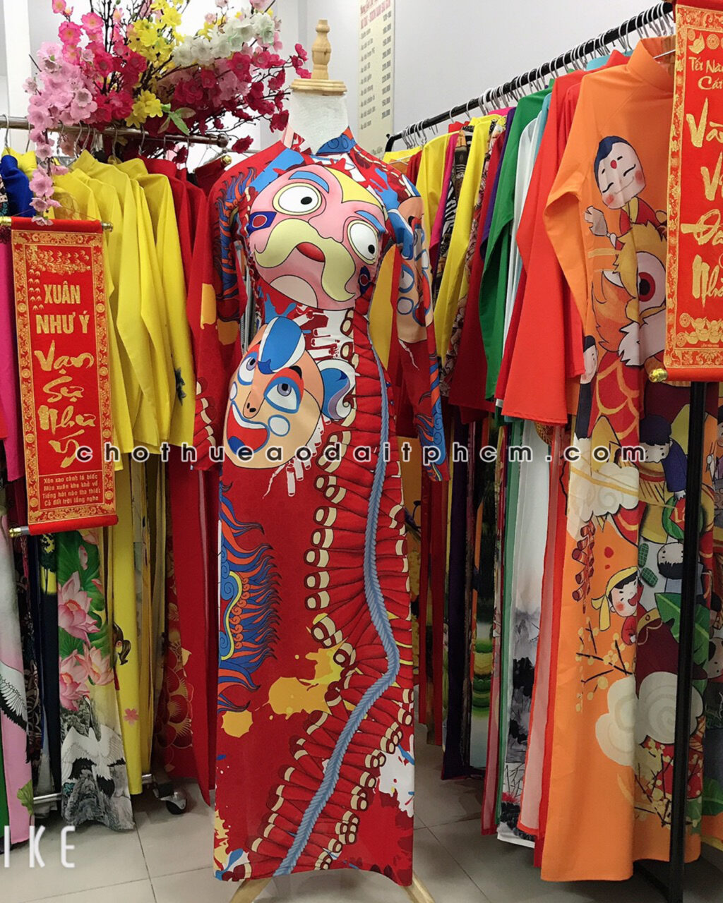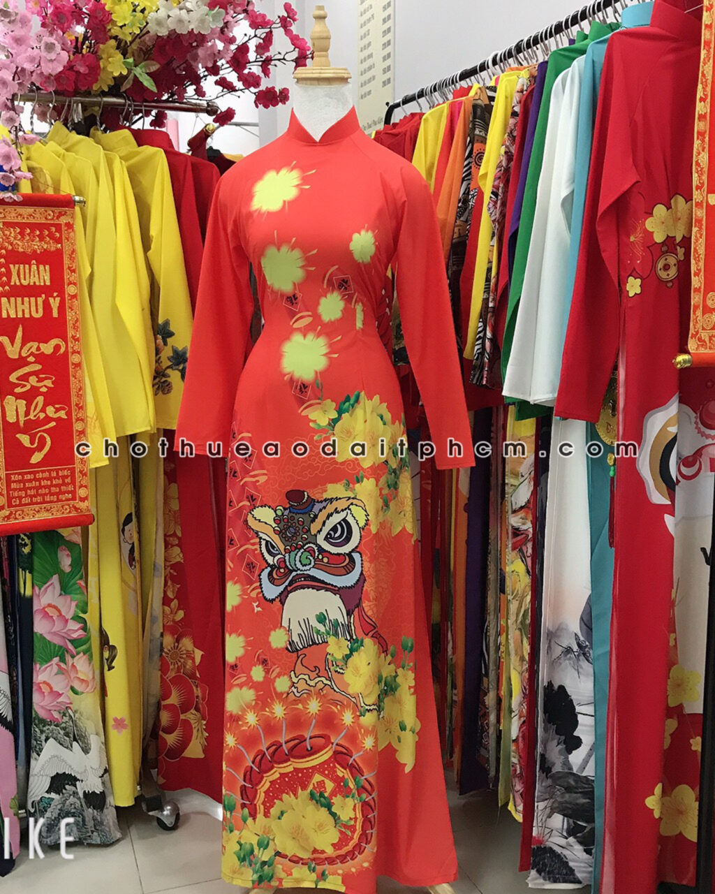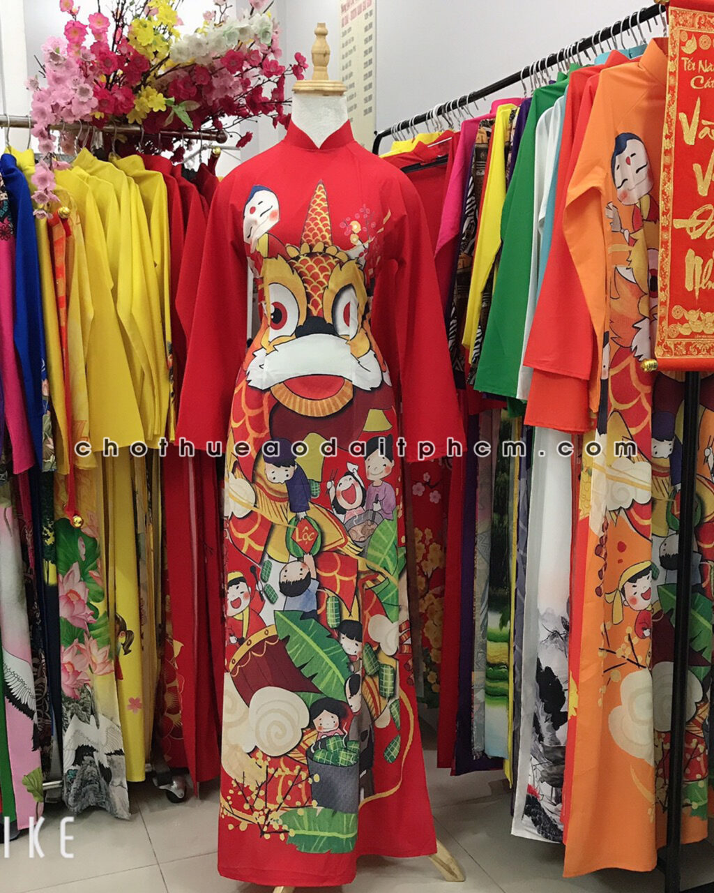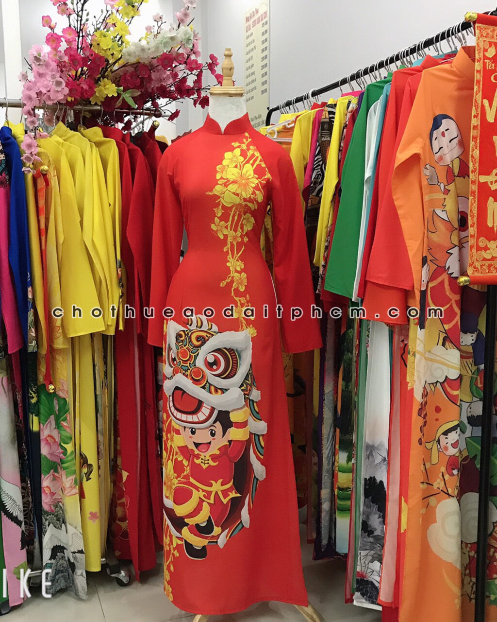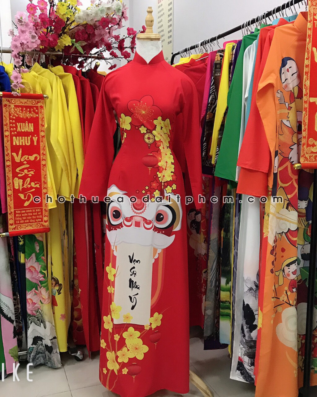 Áo dài truyền thống ADT60 đỏ hoa Tết