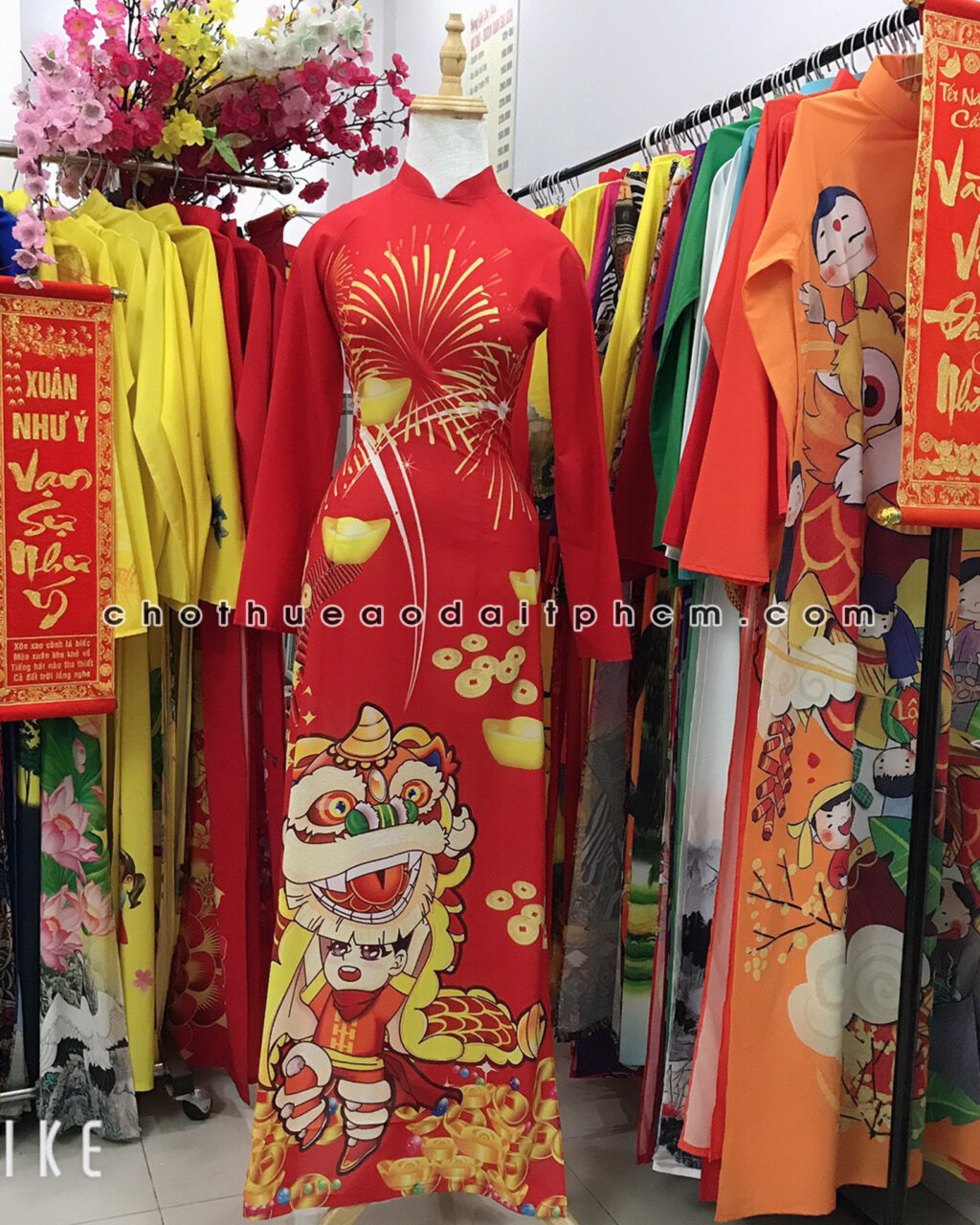 Áo dài truyền thống ADT61 đỏ pháo tết
