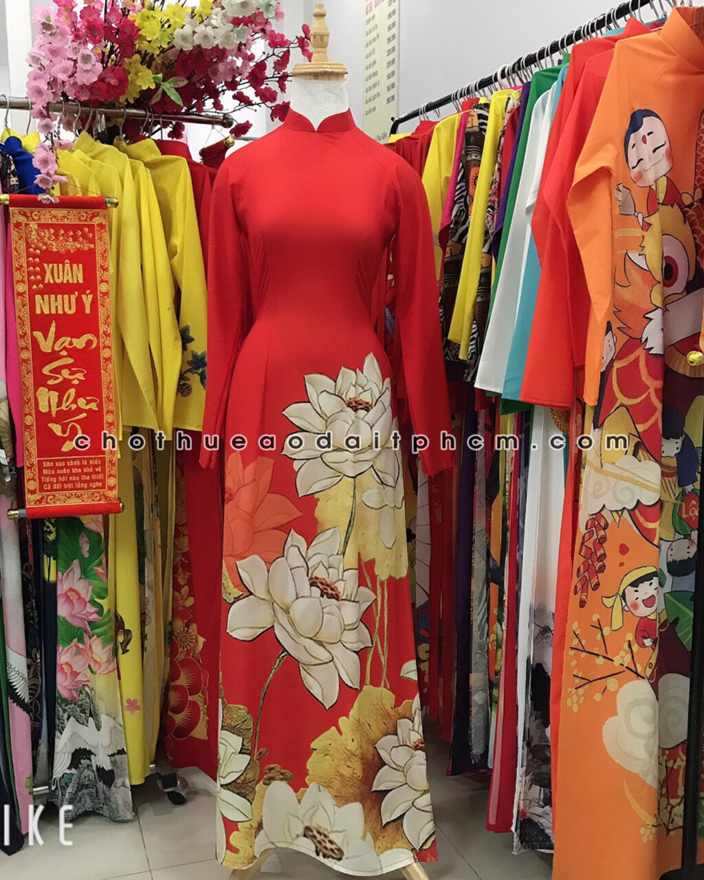 Áo dài truyền thống ADT54 đỏ hoa sen
