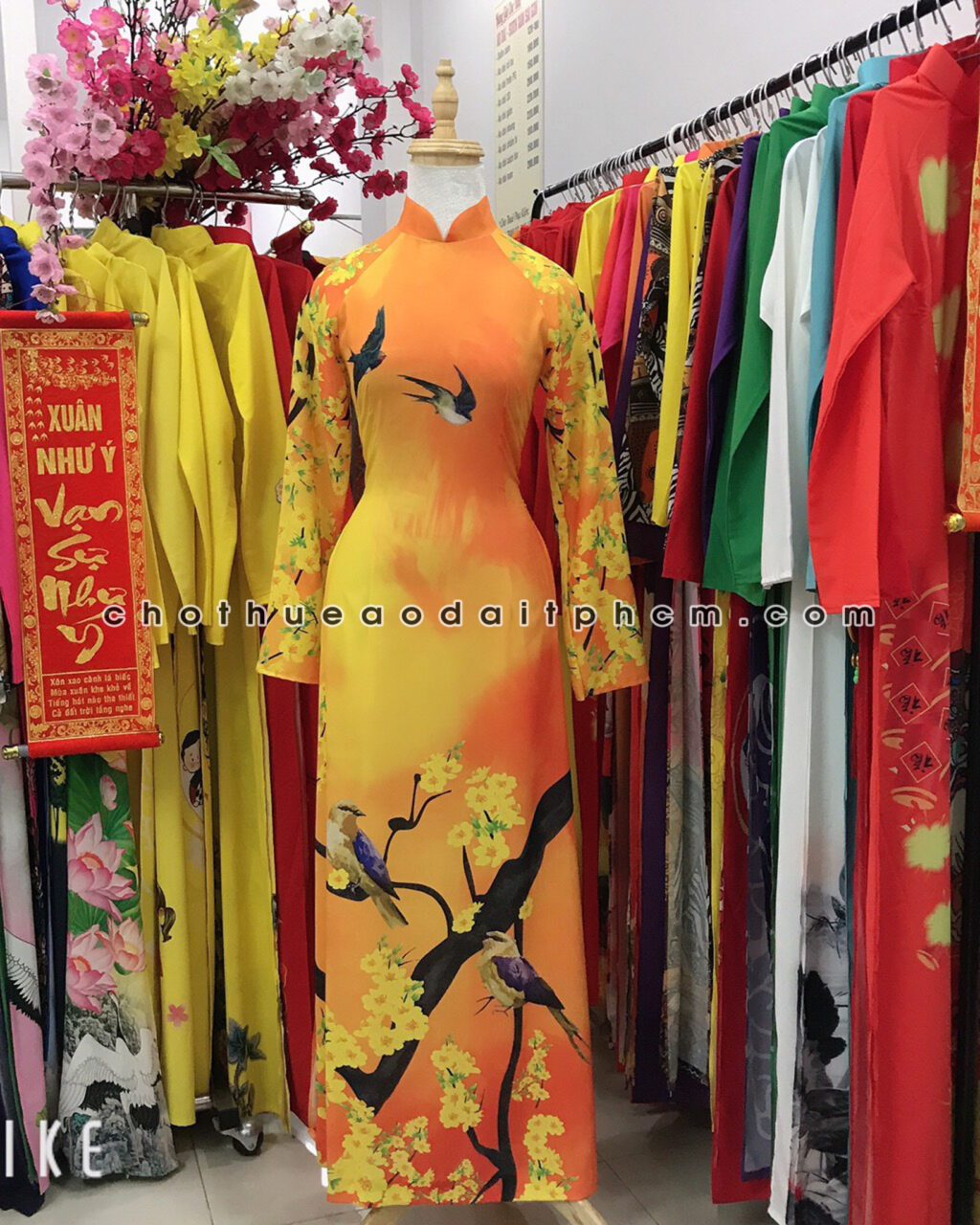 Áo dài truyền thống ADT50 cam phượng hoàng