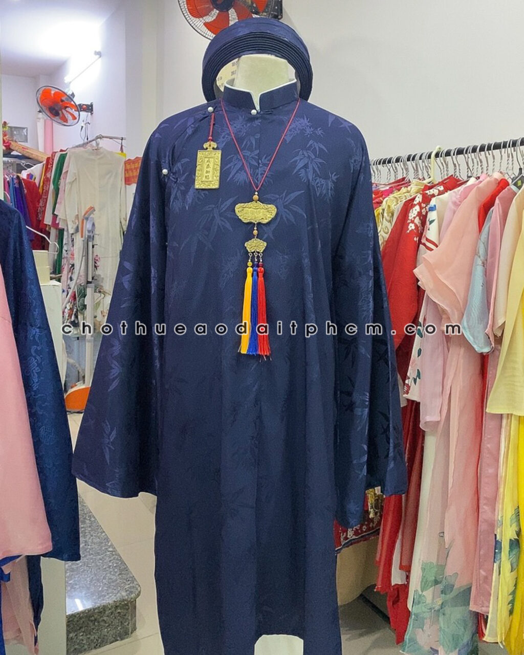 Áo tấc ATT3222 gấm xanh dương đen trúc